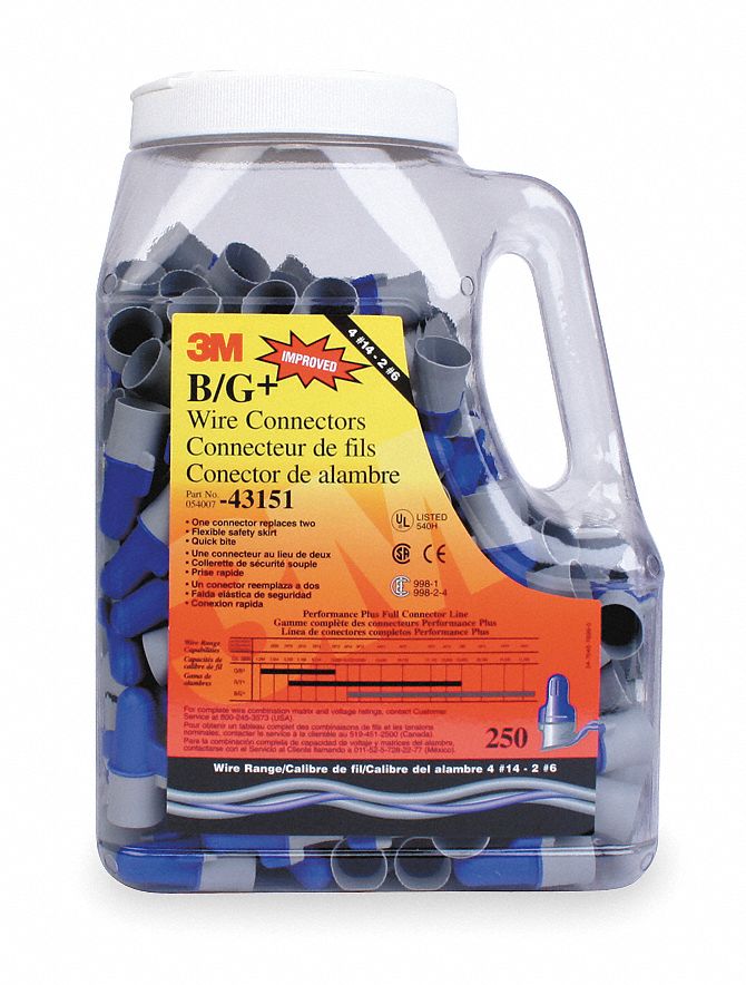 The 3m performance plus wire connector b g has a quick biting spring to give you get a tight reliable connection every time on a wide range of solid or stranded wire.